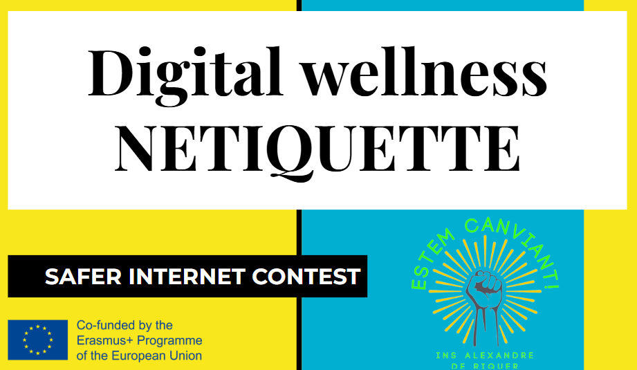 Dins del marc del projecte BeTeens! amb Polònia, Eslovàquia, Alemanya i Bèlgica, l’alumnat de 3r i 4rt d’ESO a l’institut vam començar la iniciativa NETIQUETTE en motiu del Dia Internacional per la Seguretat Digital SAFER INTERNET DAY. Es tracta de crear, entre tot l’alumnat de tots els cursos, un decàleg de bones maneres dins les xarxes socials.